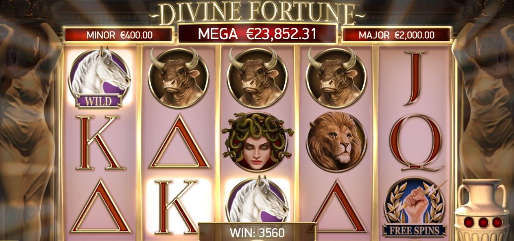 Er geldt een uitkeringspercentage van 96,6% op de videoslot Divine Fortune. Je speelt met maximaal 20 winlijnen en dan is de kans op prijzen erg groot. De winlijnen staan allemaal vast dus daar heb je verder dan ook geen omkijken naar. Je hebt verder 5 rollen en dan met 3 symbolen per rol. Er is een Wild aanwezig op de videoslot Divine Fortune en deze kun je herkennen aan de Pegasus. Deze kan alle andere symbolen op de rollen vervangen alleen de Scatter niet. Je hebt zo dus een veel grotere kans op winst en dat kun je vast en zeker goed gebruiken als je gaat gokken. Wist je ook dat de Pegasus na iedere draai een plaats op de rol zakt? Dit zal doorgaan tot je een gratis re-spin krijgt. Dit is ideaal want zo kan het nog winstgevender en spannender voor je worden.
